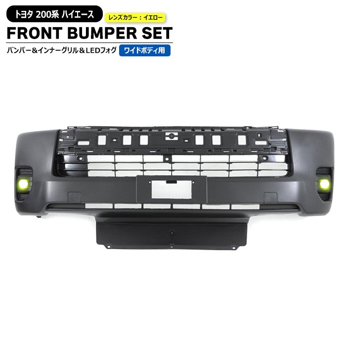 200系ハイエース ワイド 7型 8型 純正タイプ フロント バンパー & LED イエロー フォグ ランプ & インナーグリル セット トヨタ 4型 5型 6型 対応