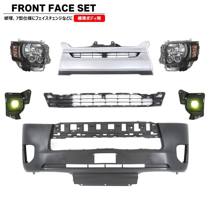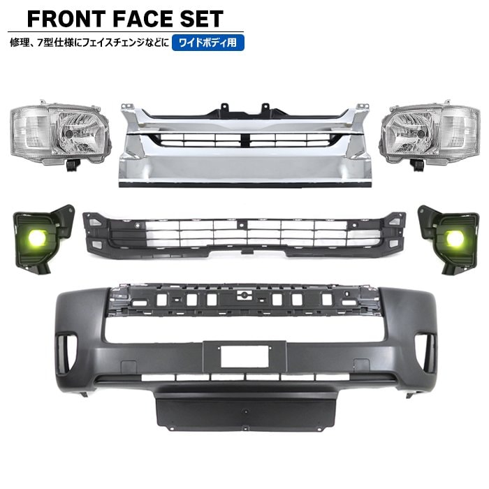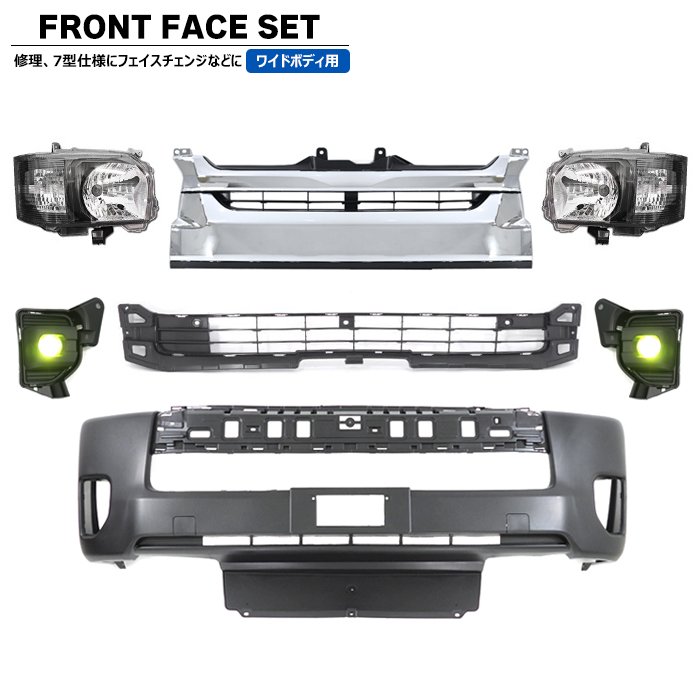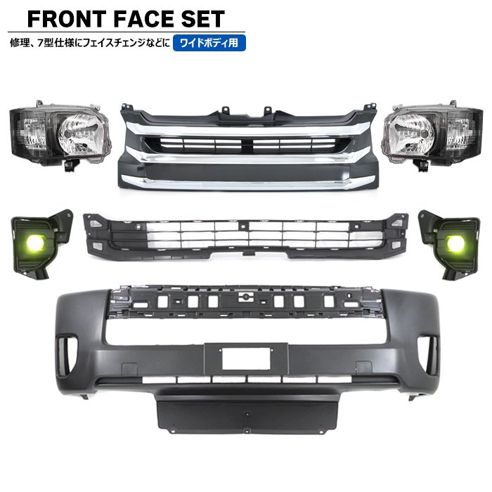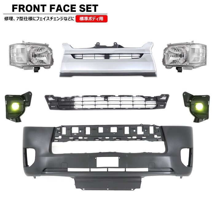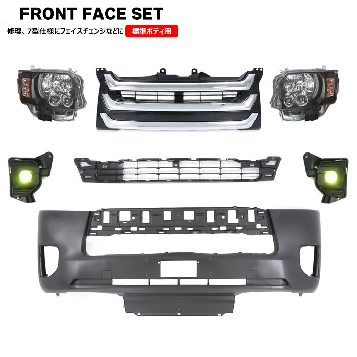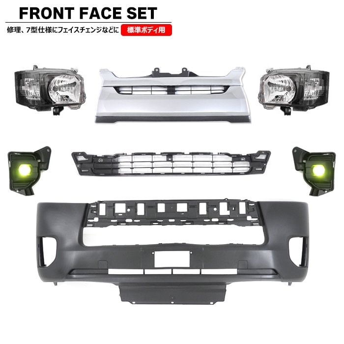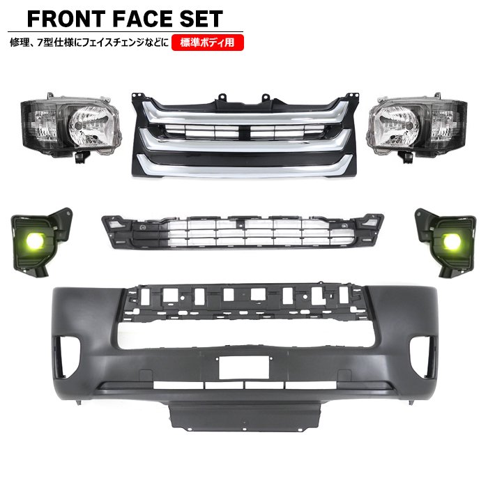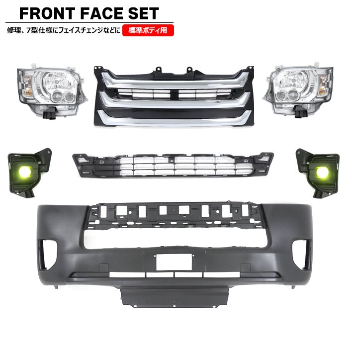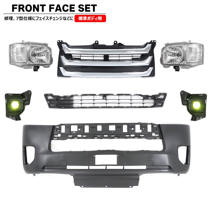 200系ハイエース 標準 7型 8型 フロント 7点 フェイスチェンジ セット Ver.6 LED ヘッドライト グリル バンパー LED フォグ トヨタ