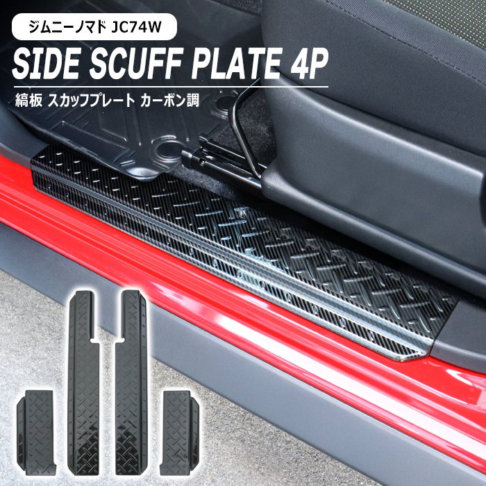 スズキ ジムニーノマド JC74W 縞板 サイド スカッフプレート 左右 4Pセット カーボン調 新品 サイドステップ ガード サイドシル カバー 内装 カスタムパーツ