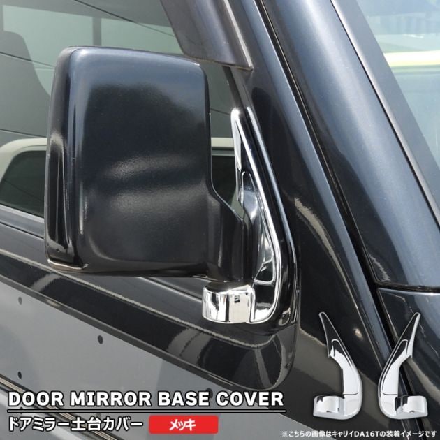 三菱 ミニキャブトラック DS16T メッキ ドアミラー ベース カバー 左右セット 貼り付け 新品 土台 根元 外装 カスタムパーツ ガーニッシュ