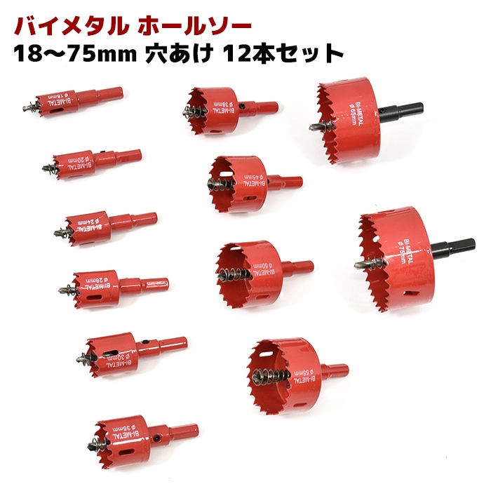 送料無料 バイメタル ホールソー お得な12本セット 18~75mm 穴あけ チャック式 DIY 工具