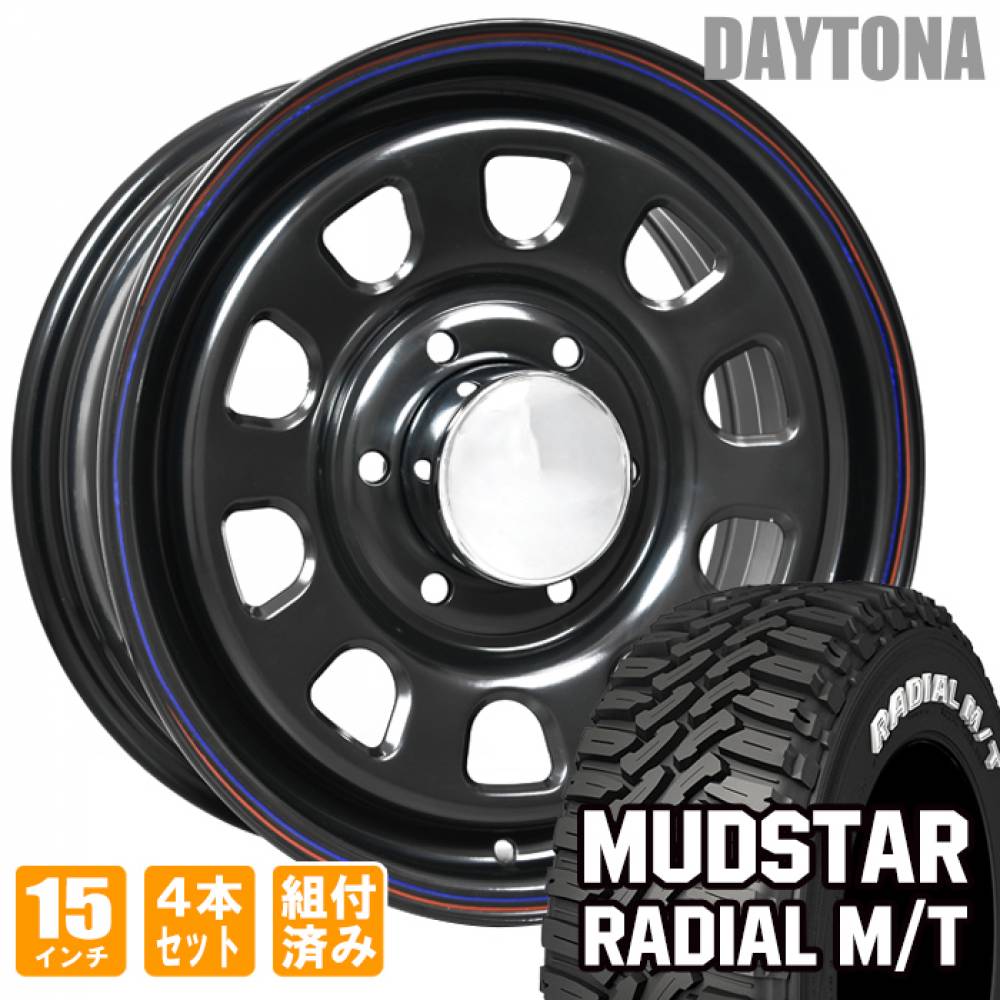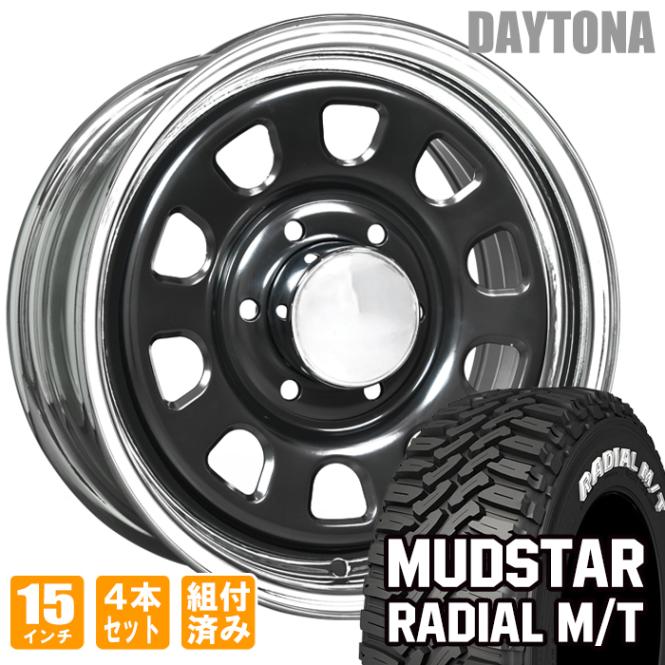 デイトナ 15インチ ブラック メッキリム MUDSTAR 195/80R15 RADIAL M/T ホワイトレター 200系ハイエース 4本セット タイヤホイールセット