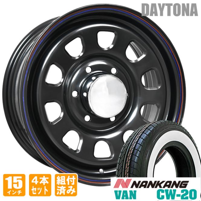 デイトナ 15インチ ブラック クロームリム ナンカン CW-20 WSW 195 80R15 ホワイトリボン 200系ハイエース 4本セット メッキ タイヤホイールセット