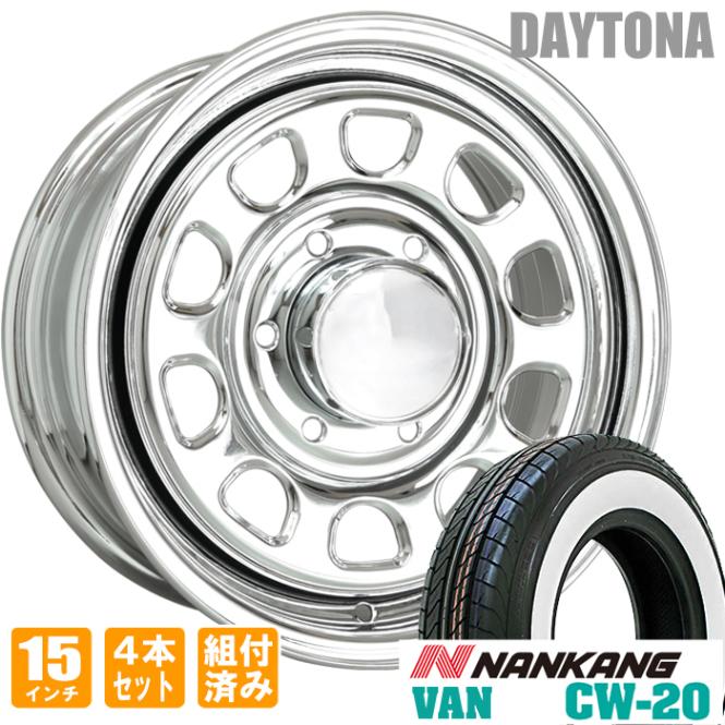 デイトナ 15インチ オールメッキ ナンカン CW-20 WSW 195/80R15 ホワイトリボン 200系ハイエース 4本セット タイヤホイールセット