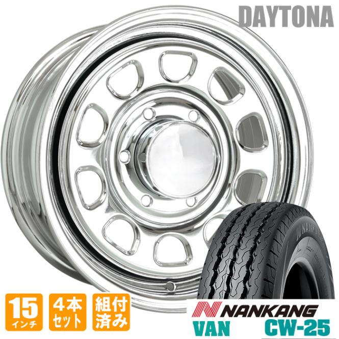 デイトナ 15インチ オールメッキ ナンカン CW-25 195/80R15 200系ハイエース 4本セット タイヤホイールセット