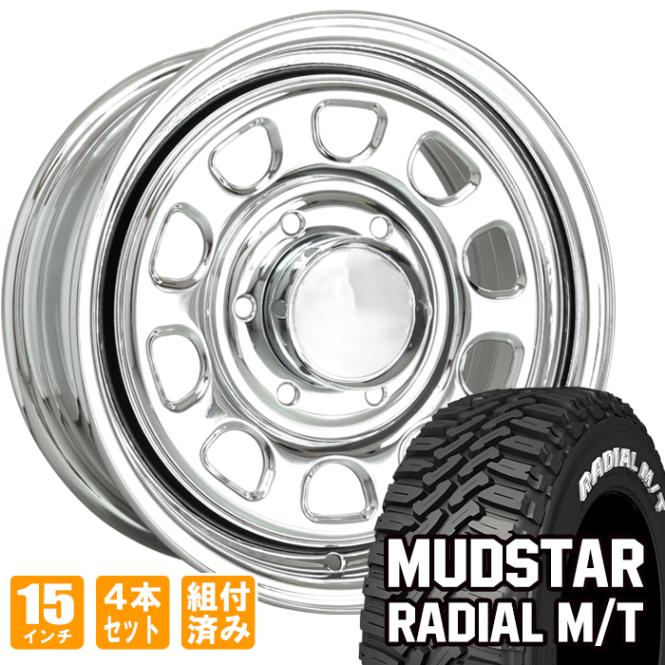 デイトナ 15インチ オール メッキ MUDSTAR 195/80R15 RADIAL M/T ホワイトレター 200系ハイエース 4本セット タイヤホイールセット