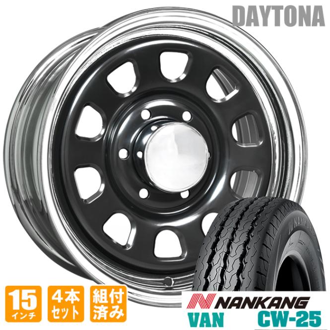 デイトナ 15インチ ブラック クロームリム ナンカン CW-25 195 80R15 200系ハイエース 4本セット メッキ タイヤホイールセット