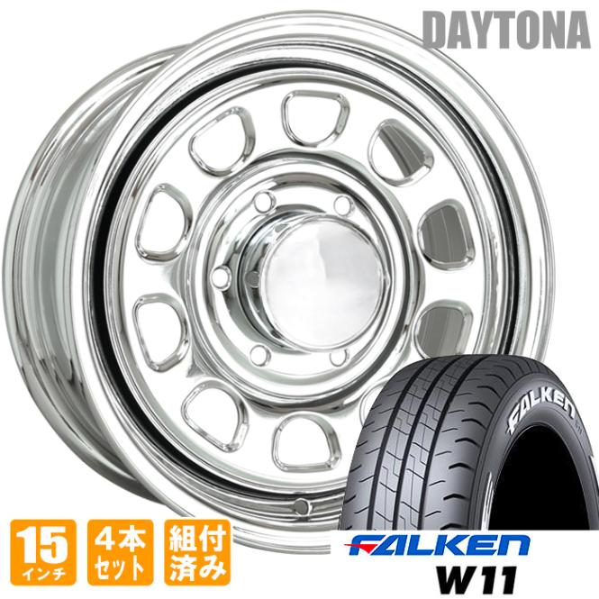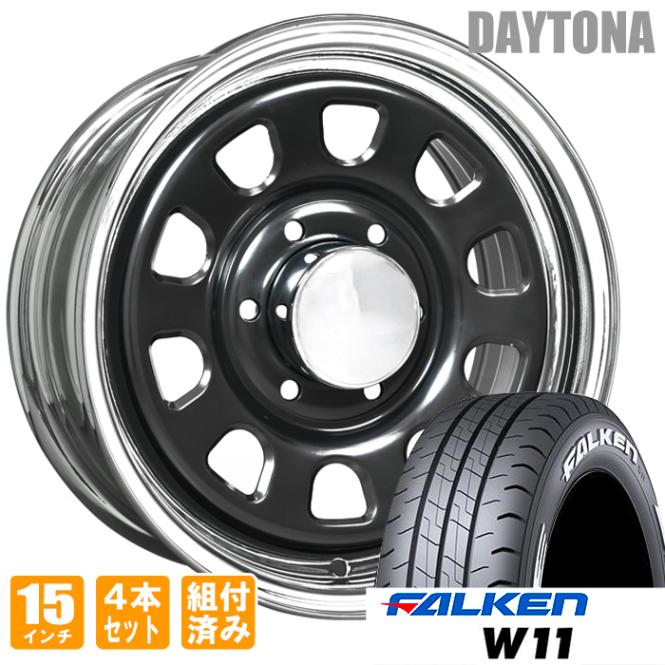 デイトナ 15インチ ブラック クロームリム ファルケンW11 195/80R15 107/105N ホワイトレター 200系ハイエース 4本セット タイヤホイールセット