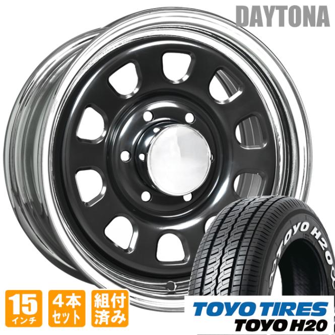 デイトナ 15インチ ブラック クロームリム トーヨータイヤ H20 195 80R15 ホワイトレター 200系ハイエース 4本セット メッキ タイヤホイールセット