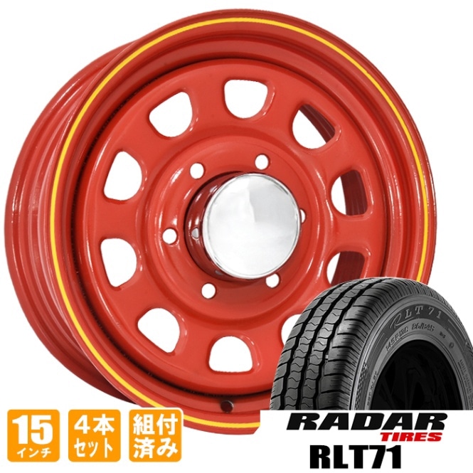 デイトナ 15インチ レッド レーダー RADAR RLT71 195/80R15 107/105Q 200系ハイエース 4本セット サマータイヤ 赤 タイヤホイールセット