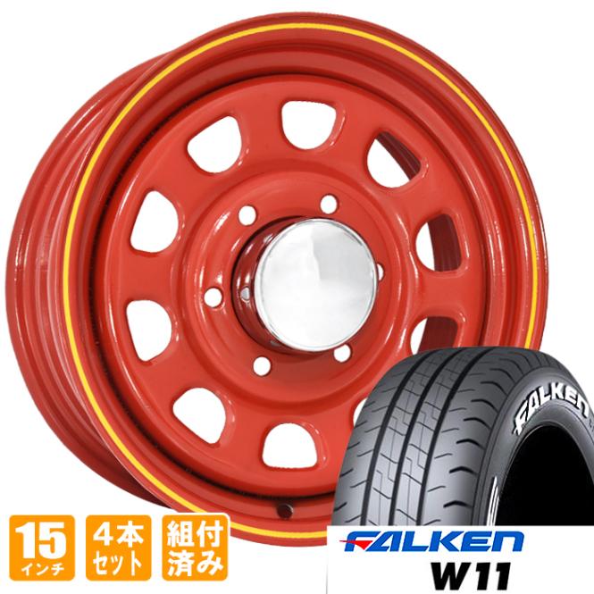 デイトナ 15インチ レッド ファルケン W11 195/80R15 107/105N ホワイトレター 200系ハイエース 4本セット TOYO TIRE ラジアル タイヤホイールセット