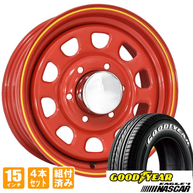 デイトナ 15インチ レッド グッドイヤー ナスカー 195/80R15 ホワイトレター 200系ハイエース 4本セット 赤 EAGLE#1 タイヤホイールセット
