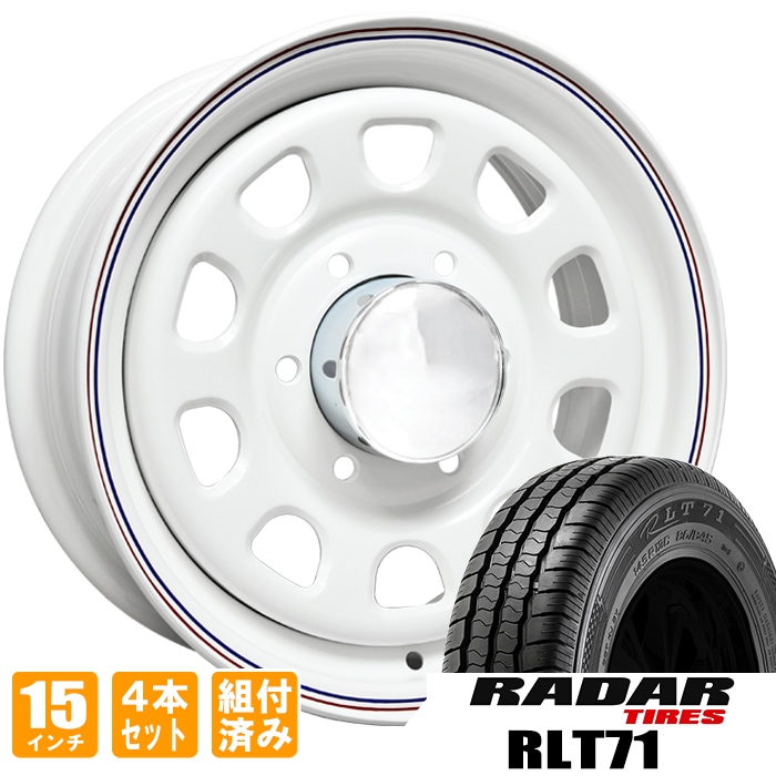 デイトナ 15インチ ホワイト レッド&ブルー ライン レーダー RADAR RLT71 195/80R15 107/105Q 200系ハイエース 4本セット サマータイヤ タイヤホイールセット