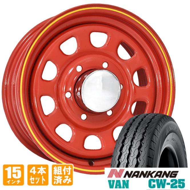 デイトナ 15インチ レッド ナンカン CW-20 WSW 195/80R15 ホワイトリボン 200系ハイエース 4本セット 6.5j +38 107/105 LT タイヤホイールセット