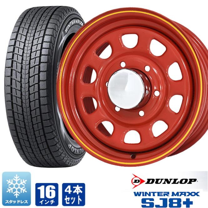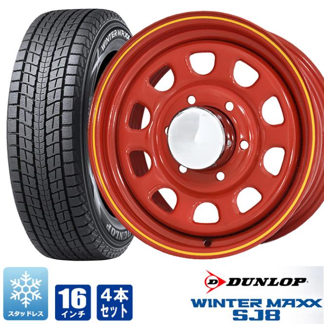 200系ハイエース スタッドレス タイヤ 4本セット デイトナ 16インチ レッド ウインターマックス SJ8 215/65R16 6.5j +38 タイヤホイールセット