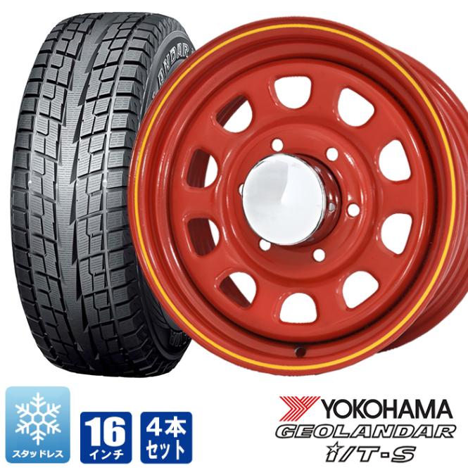 200系ハイエース スタッドレス タイヤ 4本セット デイトナ 16インチ レッド ジオランダー I/T-S G073 215/65R16 98Q DAYTONA タイヤホイールセット