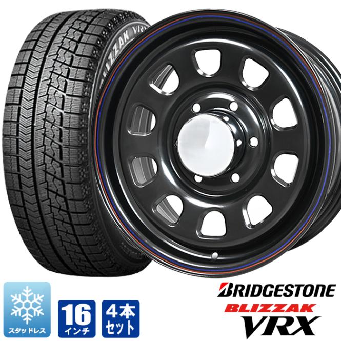 200系ハイエース スタッドレス タイヤ 4本セット デイトナ 16インチ ブラック レッド&ブルー ライン ブリザック VRX2 215/65R16 タイヤホイールセット