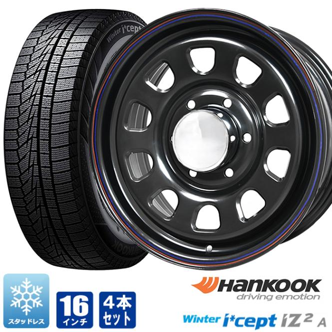 200系ハイエース スタッドレス タイヤ 4本セット デイトナ 16インチ ブラック レッド&ブルー ライン ハンコック i*cept iZ2A 215/65R16 タイヤホイールセット