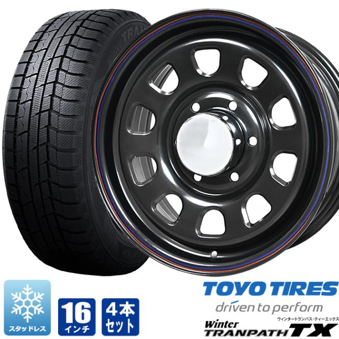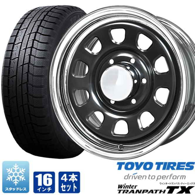 200系ハイエース スタッドレス タイヤ 4本セット デイトナ 16インチ ブラック メッキリム トーヨー トランパスTX 215/65R16 タイヤホイールセット