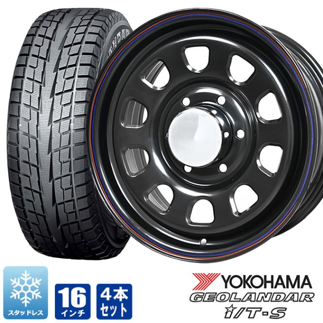 200系ハイエース スタッドレス タイヤ 4本セット デイトナ 16インチ ブラック レッド&ブルー ライン ジオランダー I/T-S G073 215/65R16 タイヤホイールセット