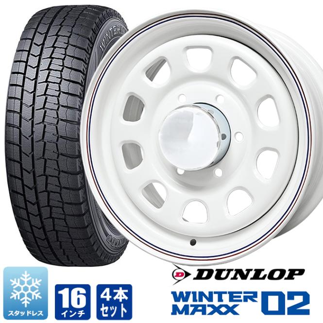 200系ハイエース スタッドレス タイヤ 4本セット デイトナ 16インチ ホワイト レッド&ブルー ライン ウインターマックス02 215/65R16 タイヤホイールセット