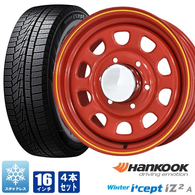 200系ハイエース スタッドレス タイヤ 4本セット デイトナ 16インチ レッド ハンコック i*cept iZ2A 215/65R16 6.5J +38 タイヤホイールセット