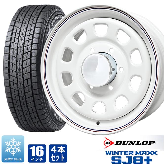 200系ハイエース スタッドレス タイヤ 4本セット デイトナ 16インチ ホワイト レッド&ブルー ライン ウインターマックス SJ8 215/65R16 タイヤホイールセット
