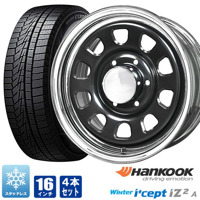 200系ハイエース スタッドレス タイヤ 4本セット デイトナ 16インチ ブラック メッキリム ハンコック i*cept iZ2A 215/65R16 タイヤホイールセット