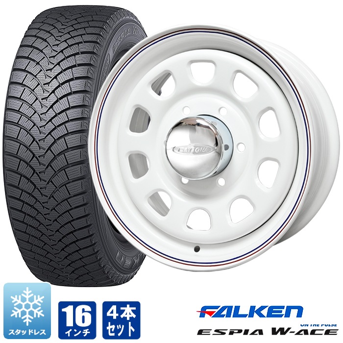 200系ハイエース スタッドレス タイヤ 4本セット デイトナ 16インチ ホワイト レッド&ブルー ライン ファルケン W-ICE 205/60R16 92H タイヤホイールセット