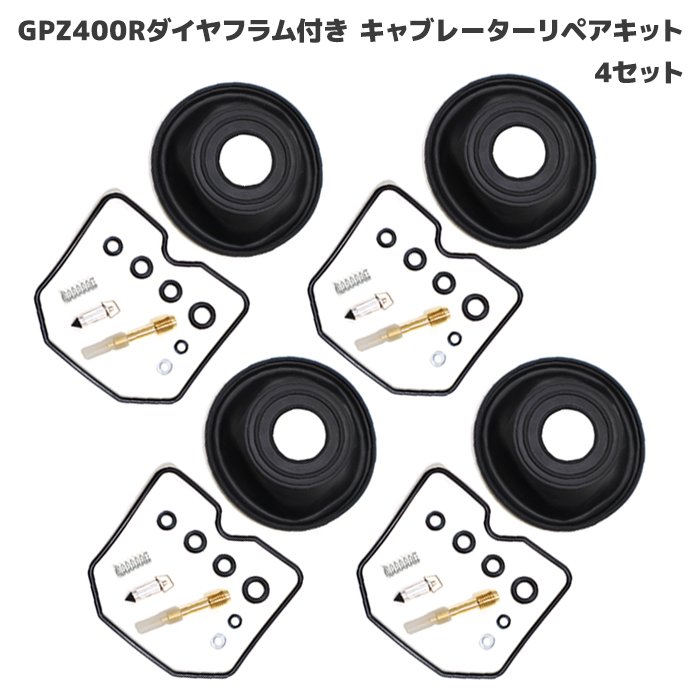 カワサキ GPZ400R ZX400 キャブレター リペアキット 4個セット オーバーホール 新品 ダイヤフラム パッキン 修理 補修 メンテナンス