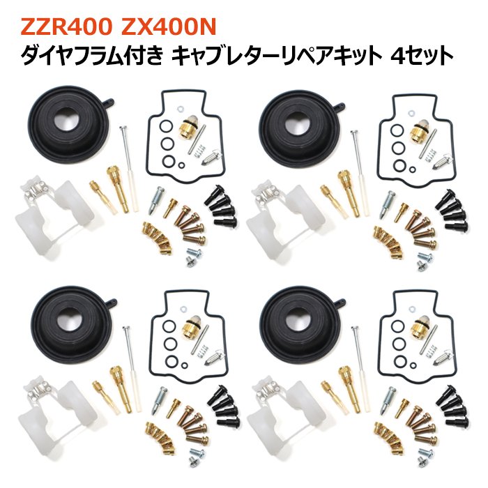 カワサキ ZZR400 キャブレター リペアキット 4個セット オーバーホール 新品 パッキン バルブ ダイヤフラム 修理 補修 メンテナンス