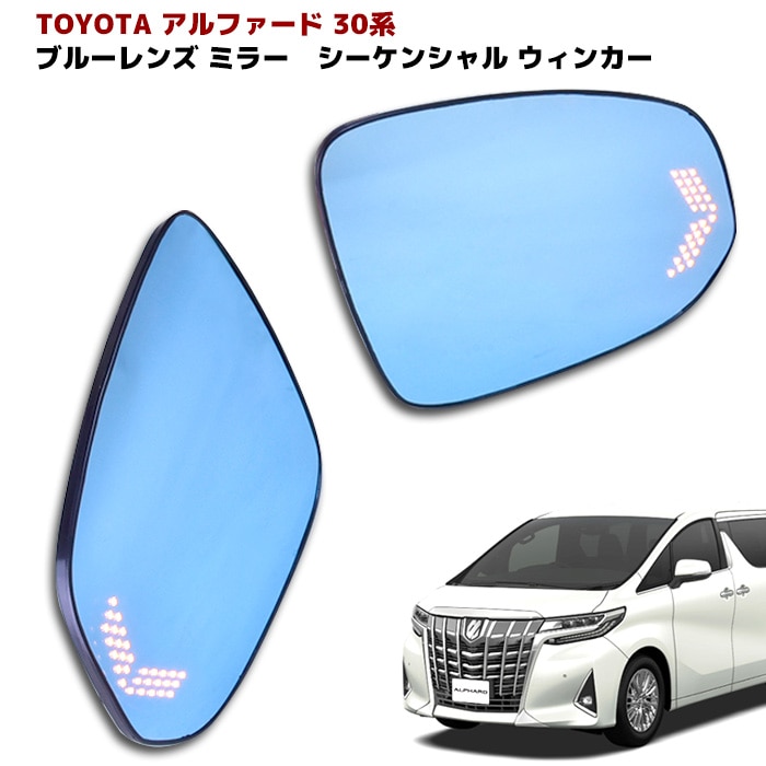 30系 アルファード ヴェルファイア サイド ミラー ドア ミラー ブルー レンズ シーケンシャル ウィンカー ミラーヒーター 左右