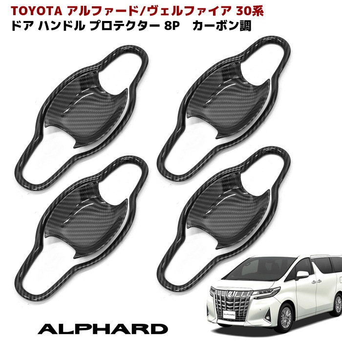 30系 アルファード ヴェルファイア 前期 後期 カーボン 調 ドアハンドルプロテクター ガーニッシュ カバー パーツ 8p