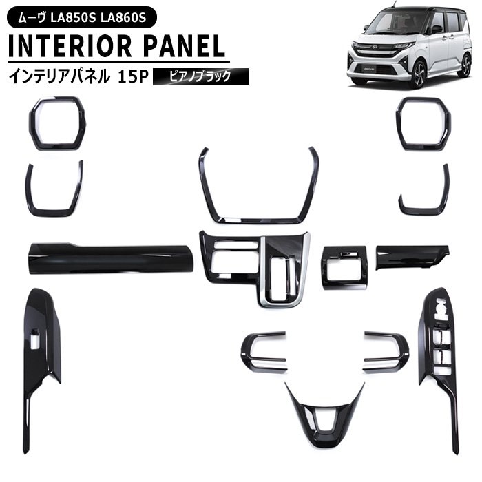 ダイハツ ムーヴ LA850S LA860S インテリアパネル 15P フルセット ピアノブラック 新品 電動パーキングブレーキ車用 インパネ ムーブ 内装 カスタムパーツ