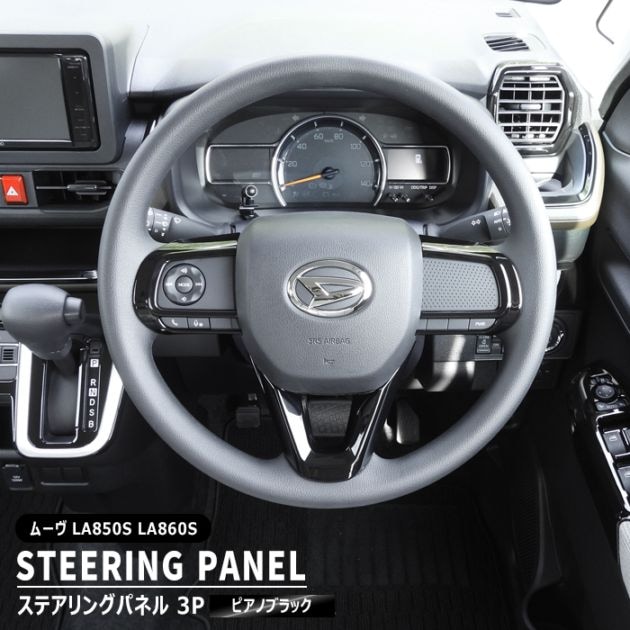ダイハツ ムーヴ LA850S LA860S ステアリングパネル 3Pセット ピアノブラック 新品 ガーニッシュ ハンドル インテリアパネル ムーブ 内装 カスタムパーツ