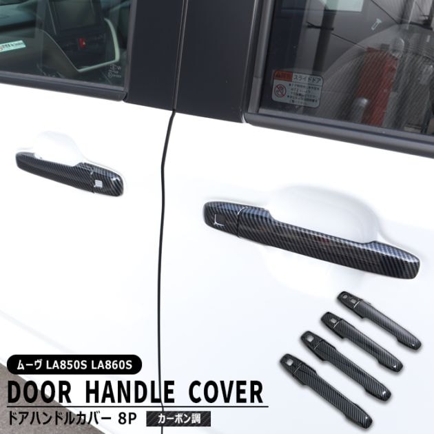 ダイハツ ムーヴ LA850S LA860S カーボン調 ドアハンドルカバー 8Pセット 新品 1台分 サイド ノブ ムーブ