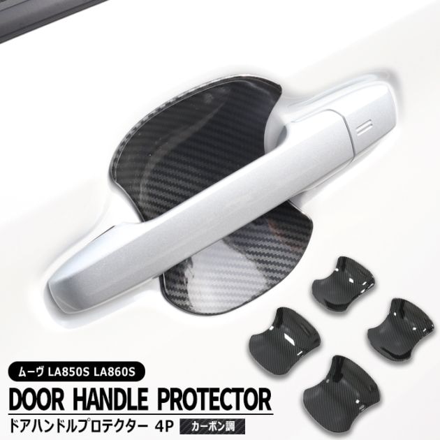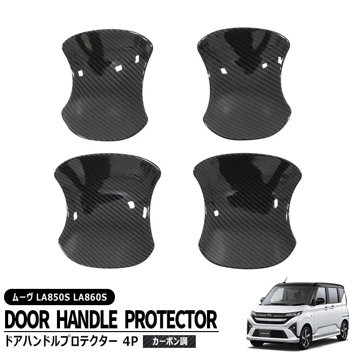ダイハツ ムーヴ LA850S LA860S カーボン調 ドアハンドルプロテクター 4Pセット ABS製 新品 1台分 サイド 受け皿 カバー 傷防止 ムーブ