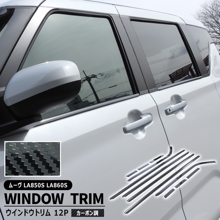 ダイハツ ムーヴ LA850S LA860S ウインドウトリム 12Pセット カーボン調 新品 1台分 サイド ウィンドウ モール 傷防止 ムーブ