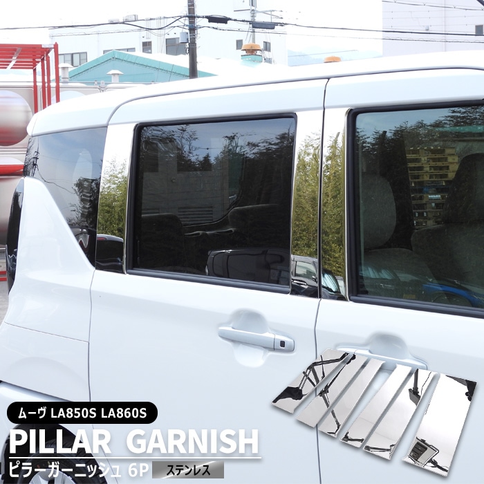 ダイハツ ムーヴ LA850S LA860S サイド ピラー ガーニッシュ 6Pセット 鏡面ステンレス 新品 1台分 ウインドウ ウィンドウ カバー ムーブ