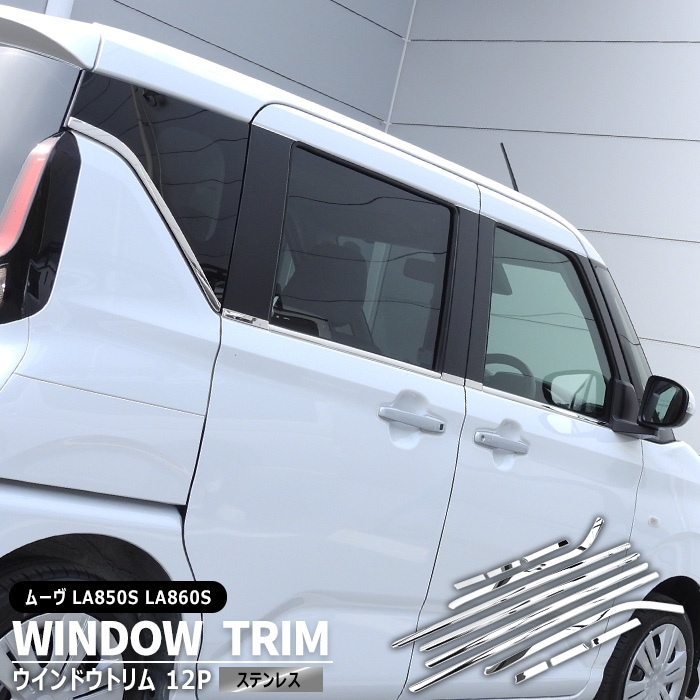 ダイハツ ムーヴ LA850S LA860S ウインドウトリム 12Pセット 鏡面ステンレス 新品 1台分 サイド ウィンドウ モール 傷防止 ムーブ