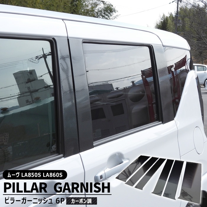ダイハツ ムーヴ LA850S LA860S サイド ピラー ガーニッシュ 6Pセット カーボン調 新品 1台分 ウインドウ ウィンドウ カバー ムーブ