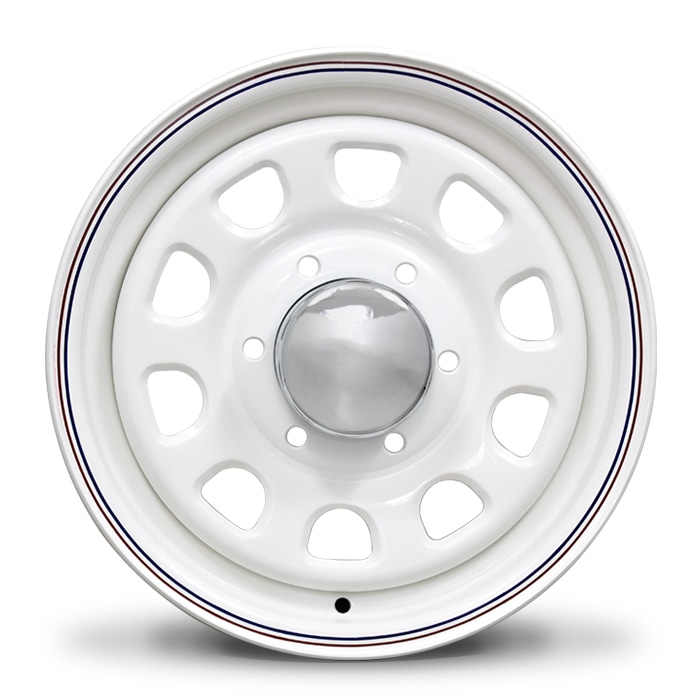 15インチ デイトナホイール 1本 【15×6.5J+38 6H PCD139.7】 ホワイト レッド&ブルー ライン 200系ハイエース 等 スチールホイール