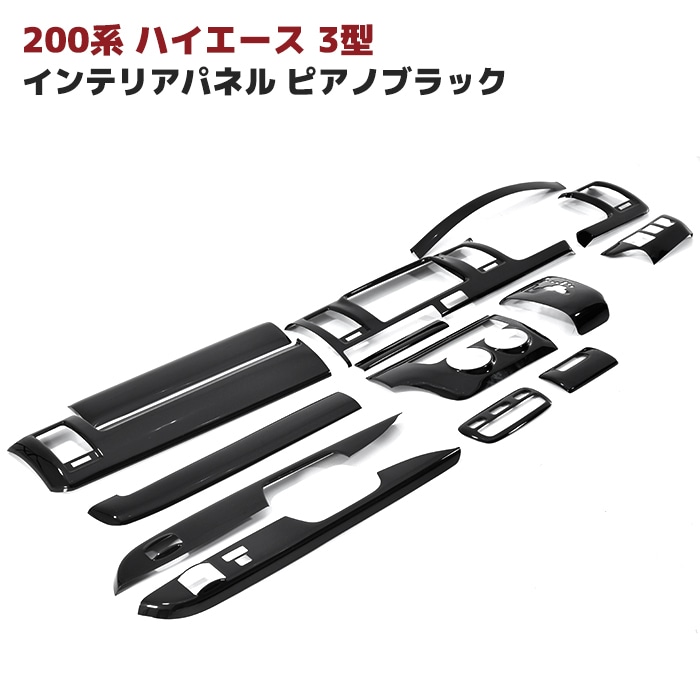 200系ハイエース 3型 標準 インテリアパネル ピアノブラック 14Pセット オートエアコン用 インパネ 内装 カスタムパーツ トヨタ