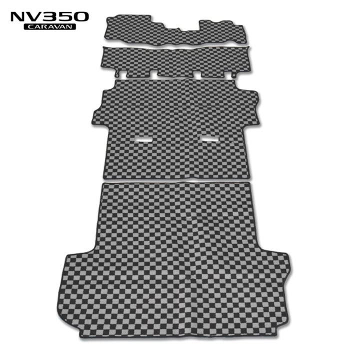 E26 キャラバン / NV350キャラバン プレミアムGX用 フロアマット チェック柄 ブラック・グレー 4点セット 内装 カスタムパーツ 日産 E26 1型 2型 3型 NV350 前期 後期
