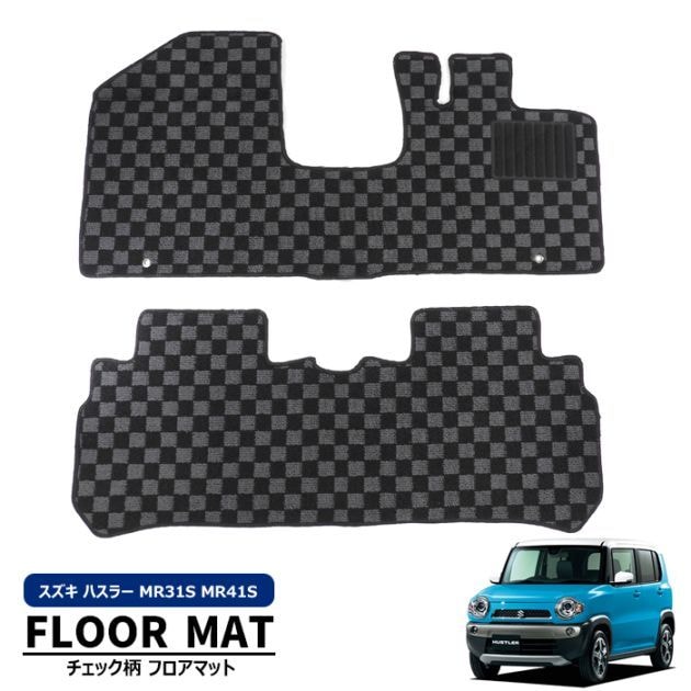 MR31S MR41S ハスラー AT車 チェック柄 フロアマット ブラック・グレー 2点セット スズキ 内装 カスタムパーツ