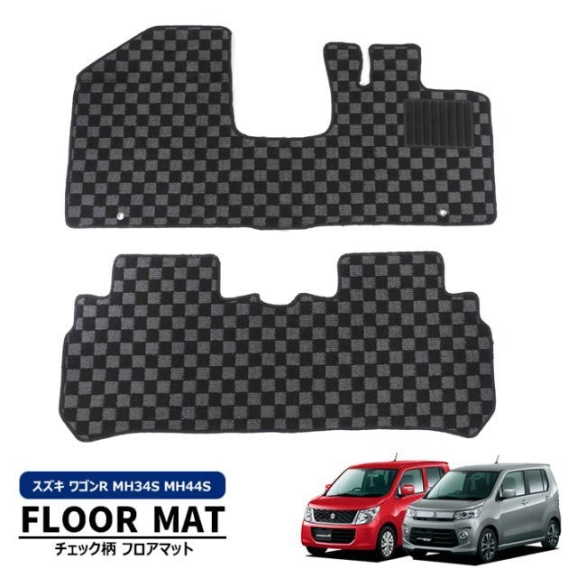 MH34S MH44S ワゴンR ワゴンRスティングレー AT車 チェック柄 フロアマット ブラック・グレー 2点セット スズキ 内装 カスタムパーツ