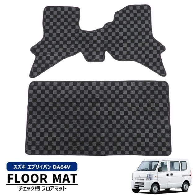 DA64V エブリイバン フロアマット チェック柄 ブラック・グレー 2点セット エブリィ スズキ 内装 カスタムパーツ