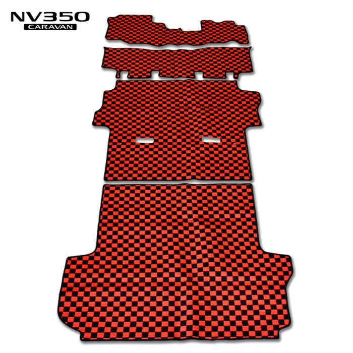 E26 キャラバン / NV350キャラバン プレミアムGX用 フロアマット チェック柄 ブラック・グレー 4点セット 内装 カスタムパーツ 日産 E26 1型 2型 3型 NV350 前期 後期