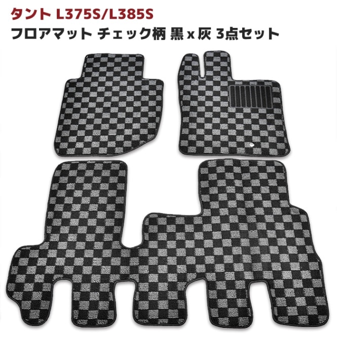 タント タントカスタム L375S L385S フロアマット チェック柄 3点セット ブラック グレー 内装 カスタムパーツ ダイハツ