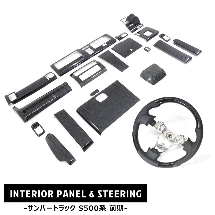 サンバー トラック S500J S510J 前期 インテリア2点セット 黒木目 インテリアパネル ガングリップ ステアリング スバル グランドキャブ対応